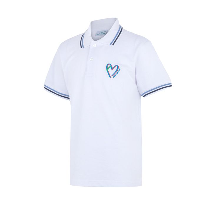 - Polo colegial de manga corta, realizado en pique con cuello y parte final de las mangas en canalé.
