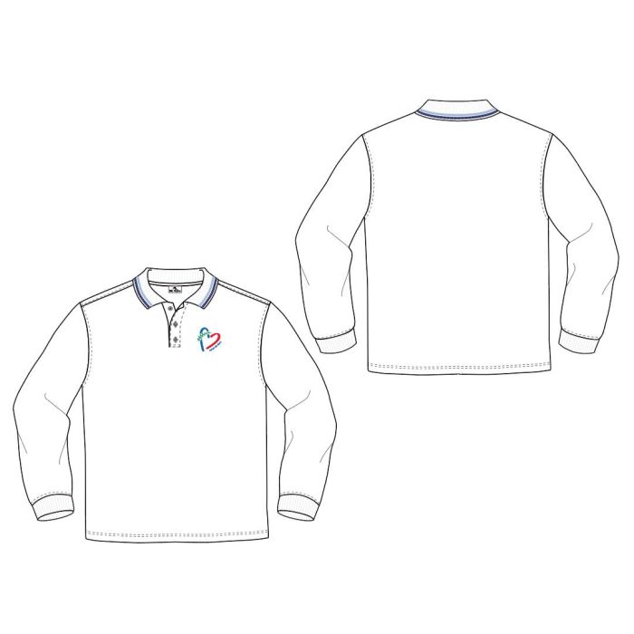 - Polo colegial de manga larga, realizado en piqué con cuello de canalé, puños de elástico